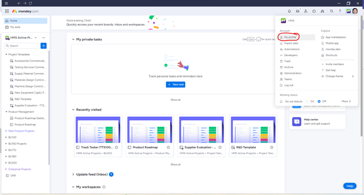 - Navigate to your profile on Monday.com.