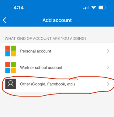 - Select the “plus” button to add account.