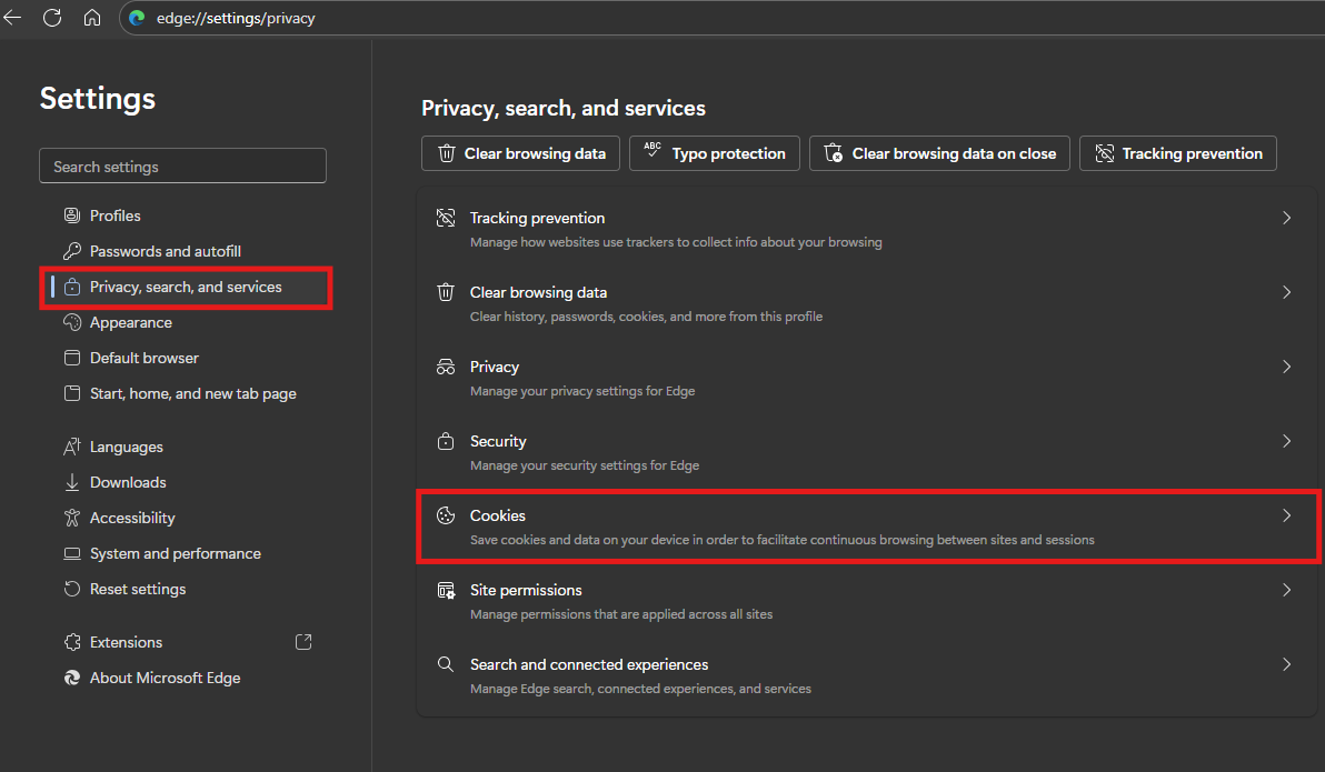 Next Privacy, search, and services then Cookies