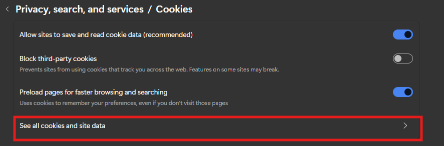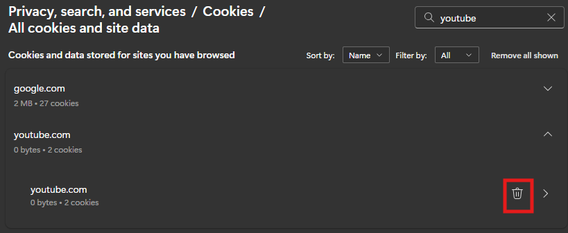Note: If this doesn’t resolve the issue, or if you’re unable to locate the site, you may need to clear your entire browsing data. Keep in mind that this will remove cookies and cached data for all websites, which may sign you out of sites and reset saved preferences.