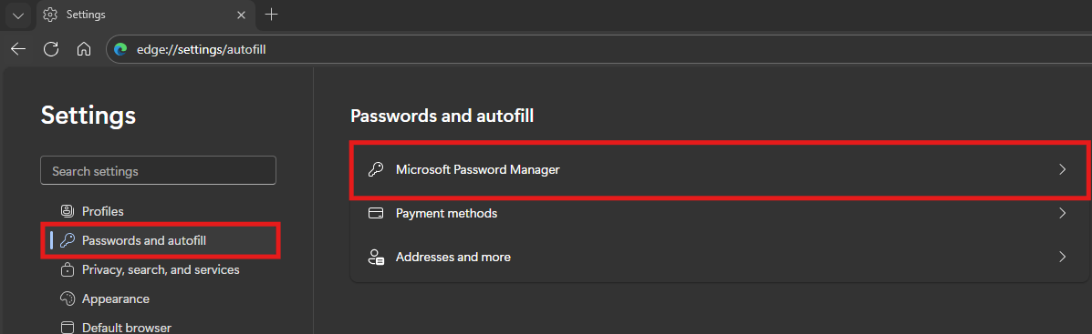 Next Passwords and autofill and then Microsoft Password Manager