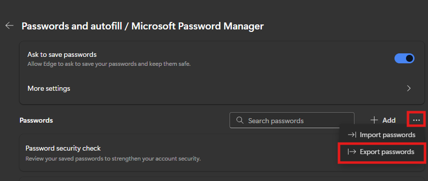 Microsoft Edge - Passwords