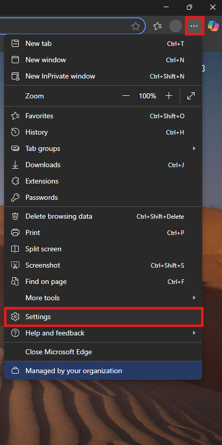 Click the ellipsis menu (...) in the top right corner in Edge and then Settings