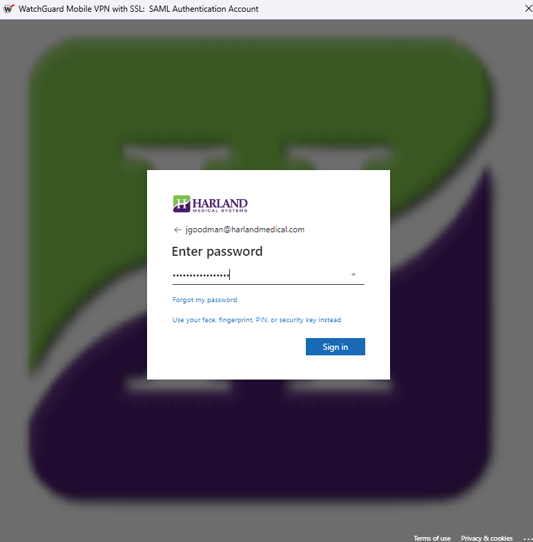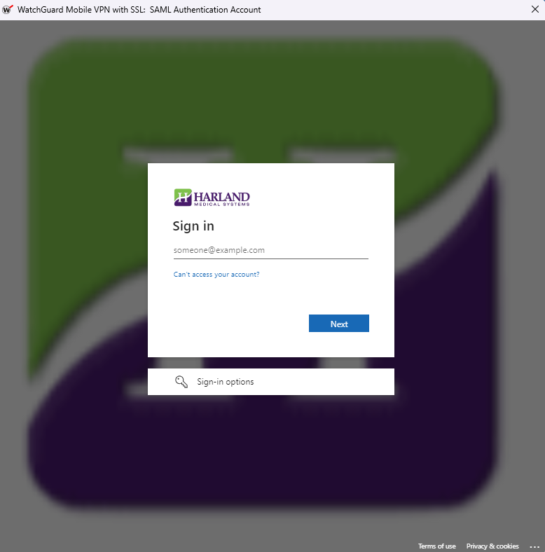 A login window will open as shown below. Enter your Harland email address and press Next.